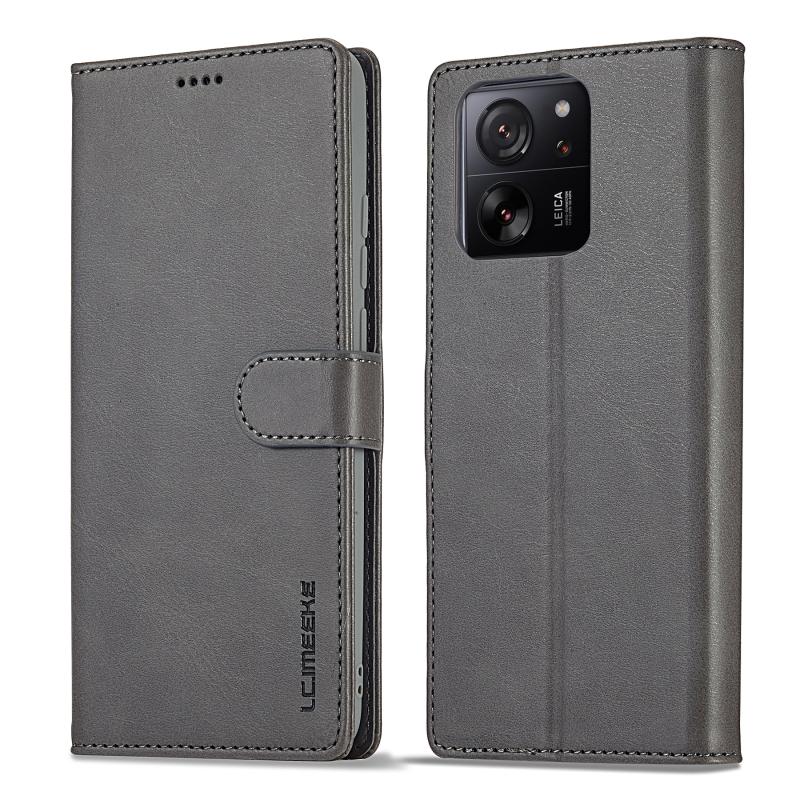 For Xiaomi 14T Pro LC.IMEEKE Calf Texture Leather Phone Case(Grey) (LC.IMEEKE)