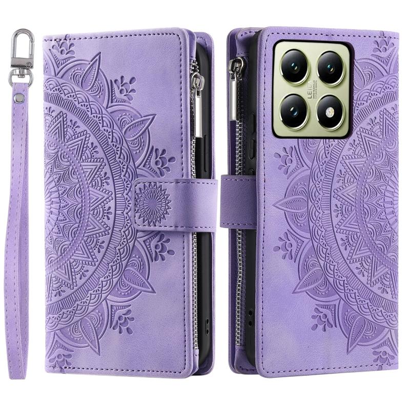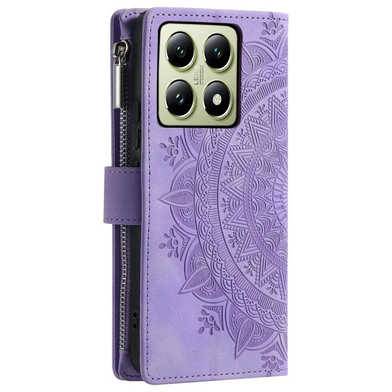 For Xiaomi 14T Pro Multi-Card Totem Zipper Leather Phone Case(Purple)