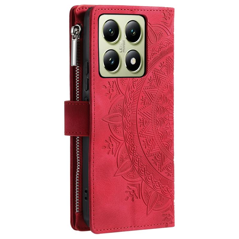 For Xiaomi 14T Pro Multi-Card Totem Zipper Leather Phone Case(Red)
