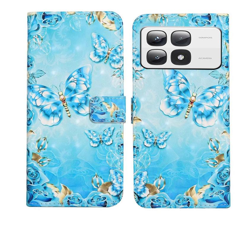 For Xiaomi 14T Pro Oil Embossed 3D Drawing Leather Phone Case(Blue Butterflies)
