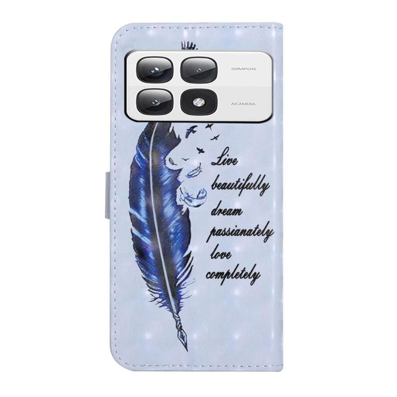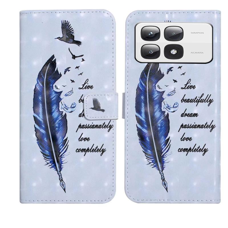 For Xiaomi 14T Pro Oil Embossed 3D Drawing Leather Phone Case(Blue Feather)