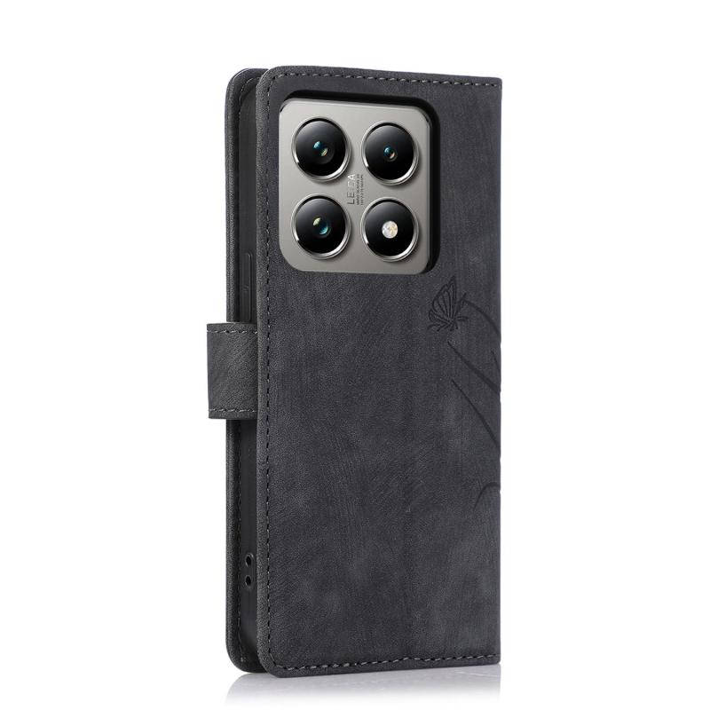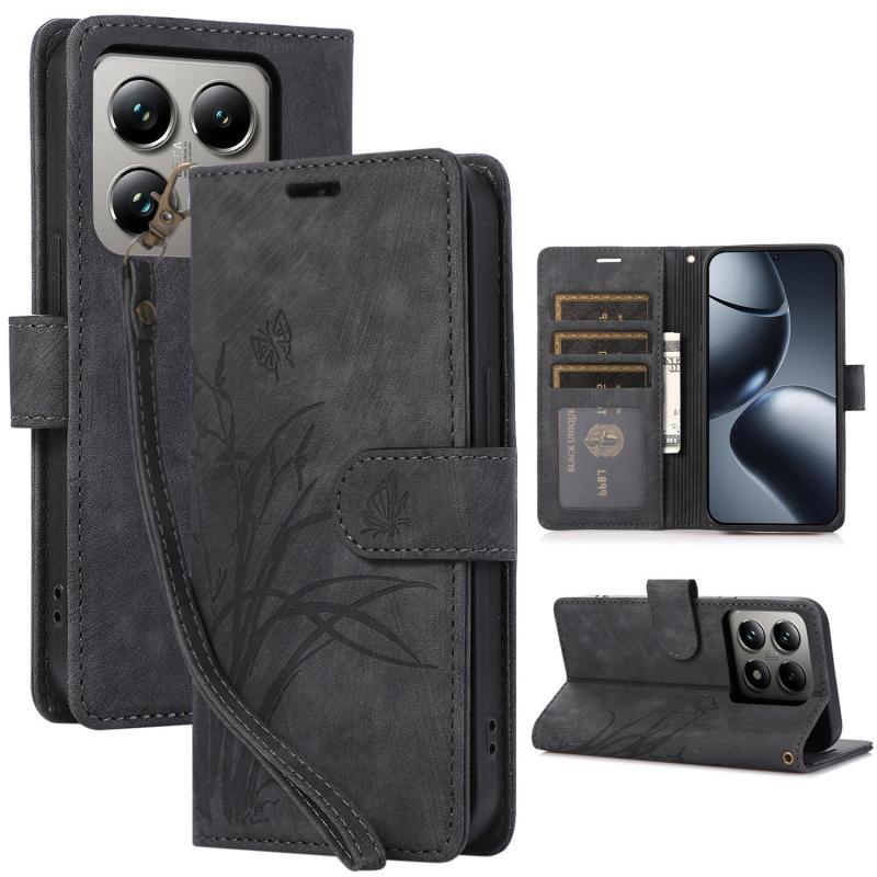 For Xiaomi 14T Pro Orchid Butterfly Embossed Leather Phone Case(Black)