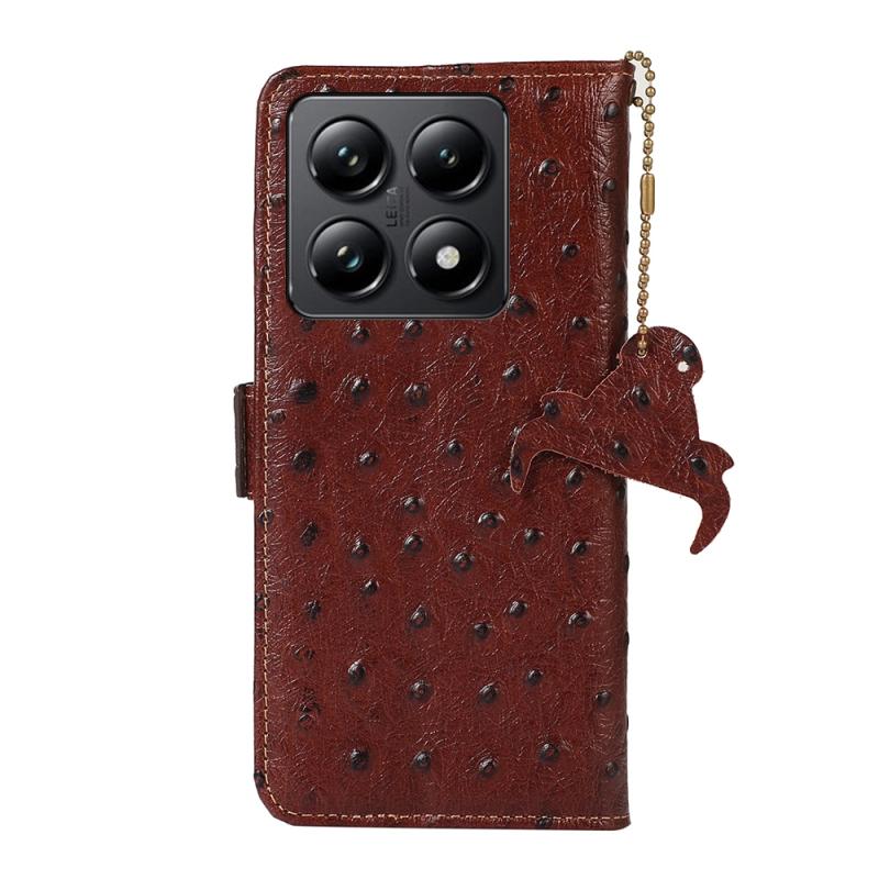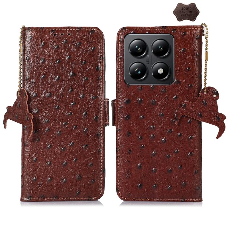 For Xiaomi 14T Pro Ostrich Pattern Genuine Leather RFID Phone Case(Coffee)