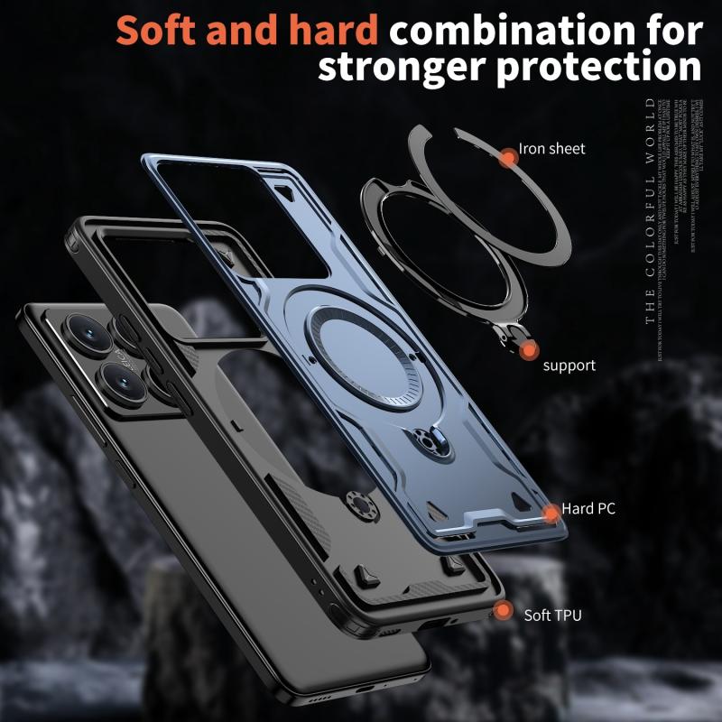 For Xiaomi 14T Pro PC Hybrid TPU Armor MagSafe Ring Holder Phone Case(Blue)