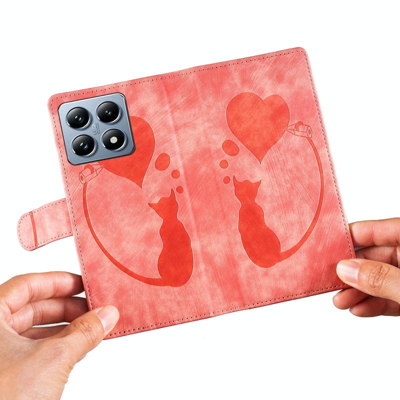 For Xiaomi 14T Pro Pen Heart Cat Embossed Leather Phone Case(Orange)