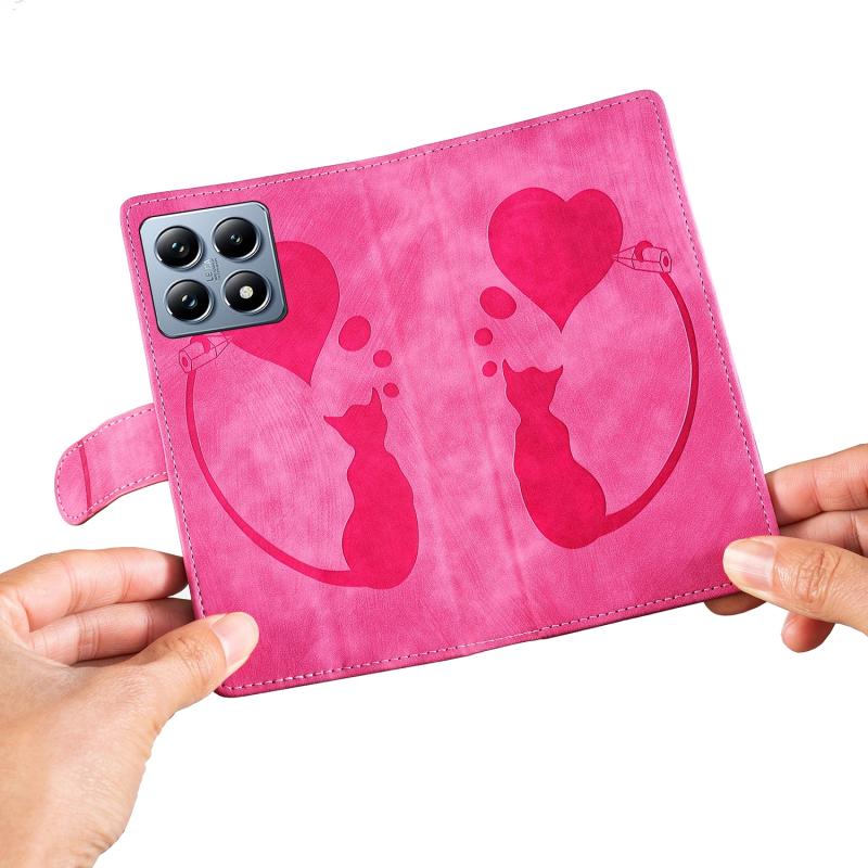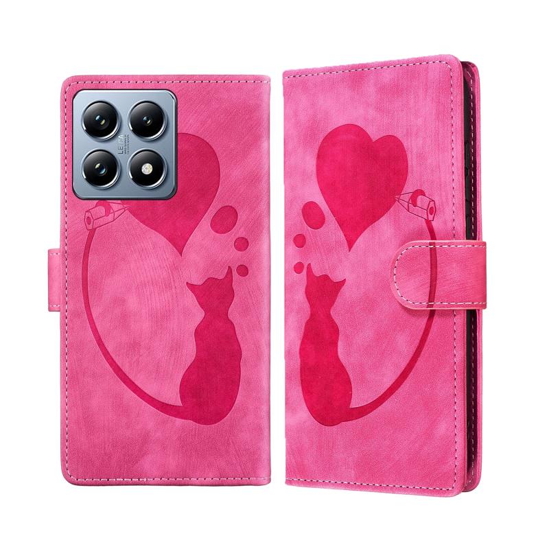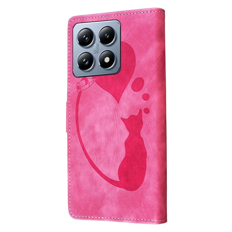 For Xiaomi 14T Pro Pen Heart Cat Embossed Leather Phone Case(Pink)