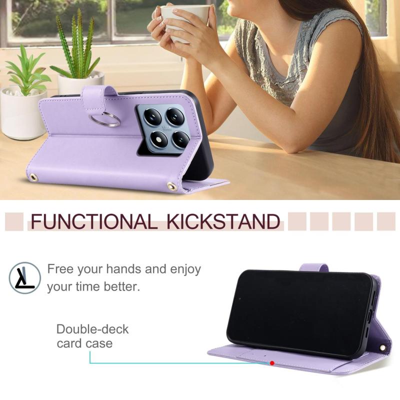 For Xiaomi 14T Pro Ring Buckle Rhombic Leather Phone Case(Purple)