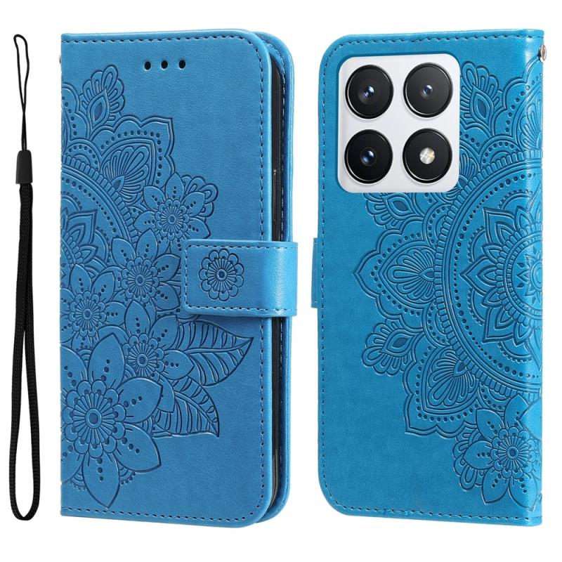 For Xiaomi 14T Pro Seven-petal Flowers Embossing Leather Phone Case(Blue)