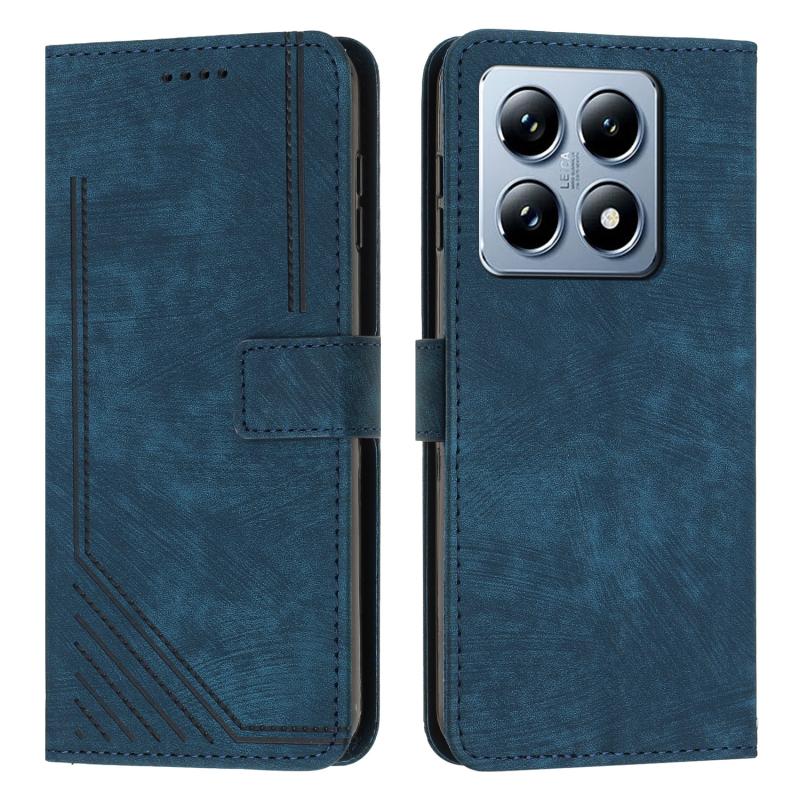 For Xiaomi 14T Pro Skin Feel Stripe Pattern Leather Phone Case(Blue)