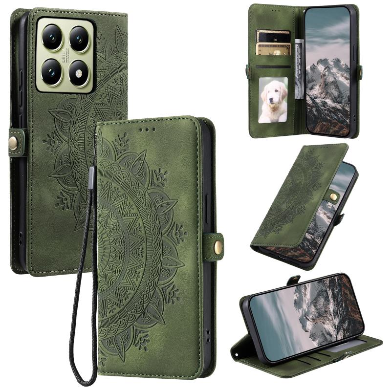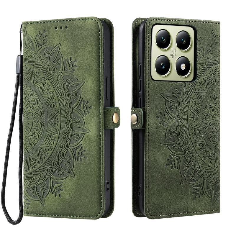 For Xiaomi 14T Pro Skin Feel Totem Embossed Leather Phone Case(Deep Green)