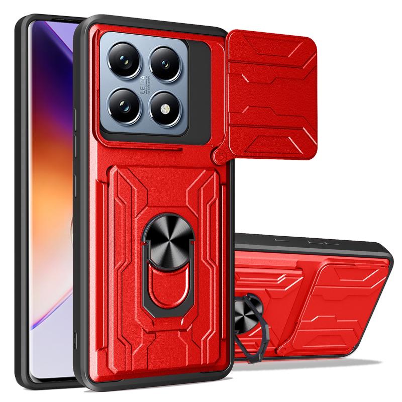 For Xiaomi 14T Pro Sliding Camshield TPU+PC Phone Case with Card Slot(Red)