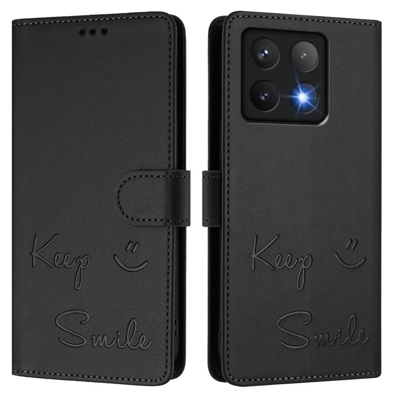 For Xiaomi 14T Pro Smile Embossing RFID Leather Phone Case(Black)