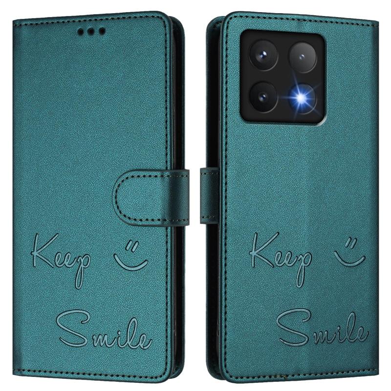 For Xiaomi 14T Pro Smile Embossing RFID Leather Phone Case(Peacock Green)