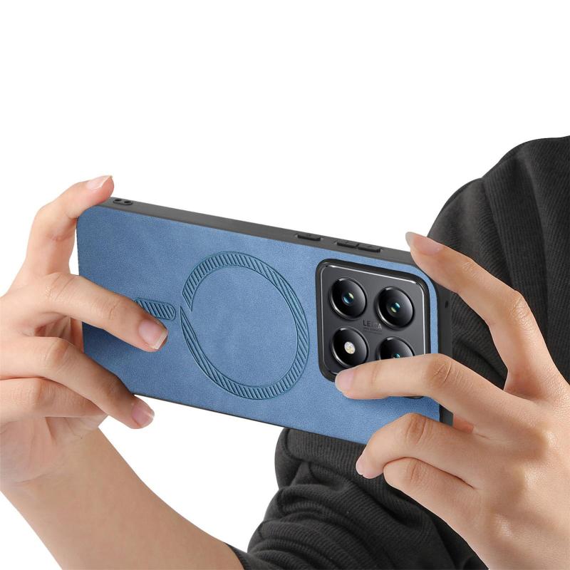 For Xiaomi 14T Pro Solid Color Retro Magsafe PU Back Cover Phone Case(Blue)