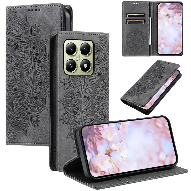 For Xiaomi 14T Pro Totem Embossed Magnetic Leather Phone Case(Grey)