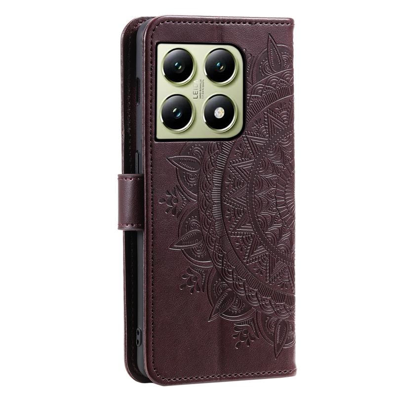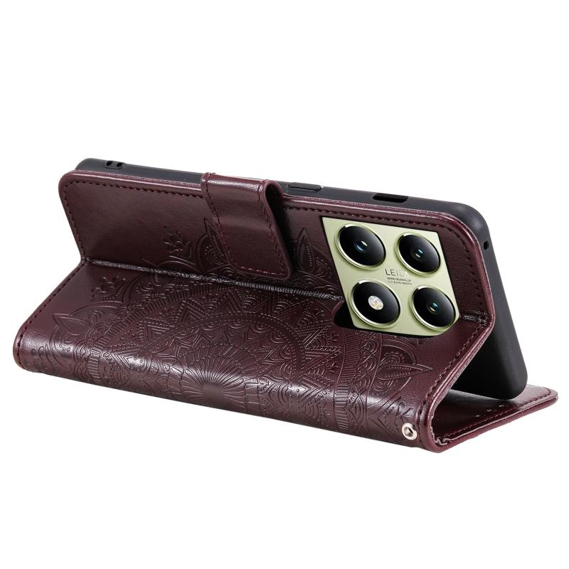 For Xiaomi 14T Pro Totem Flower Embossed Leather Phone Case with Lanyard(Brown)
