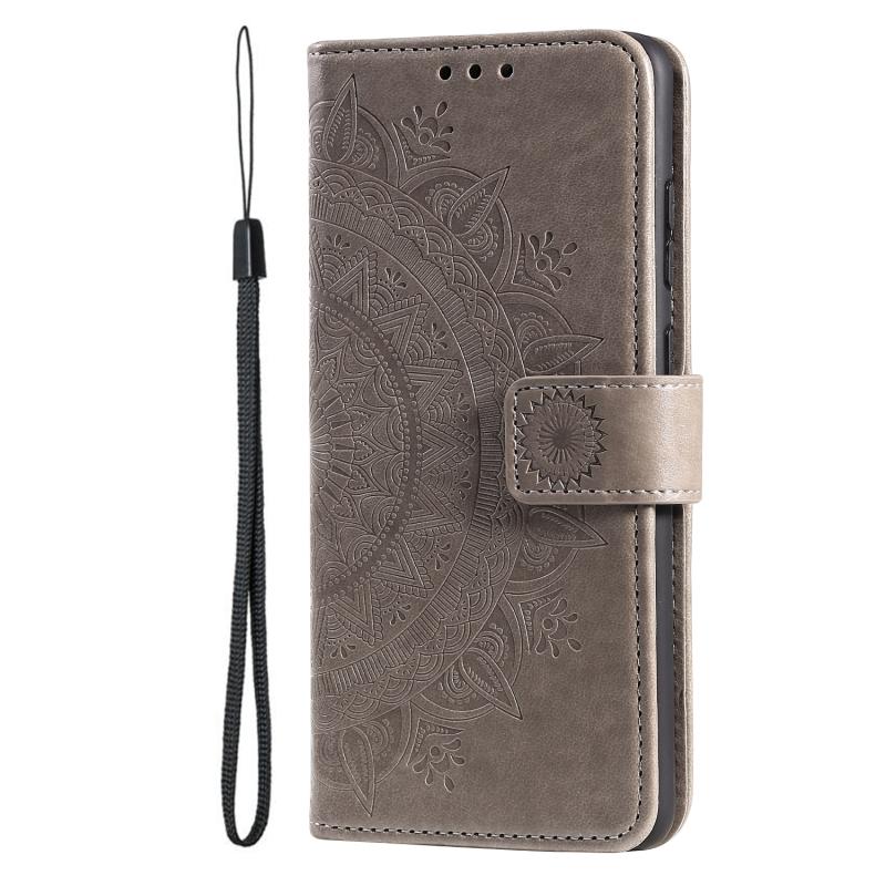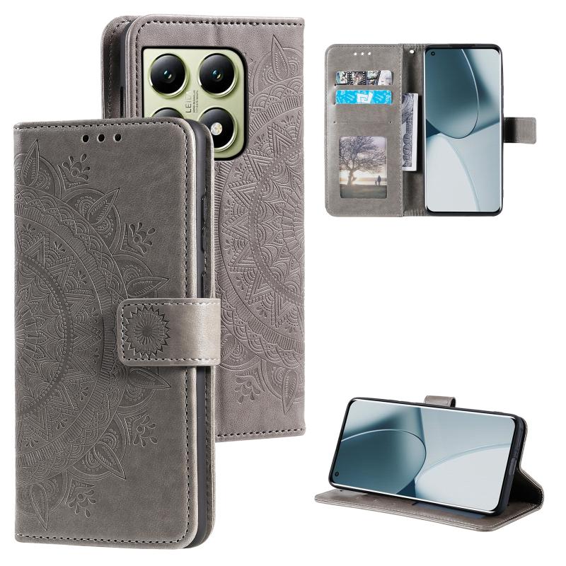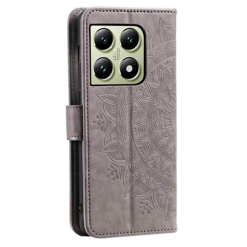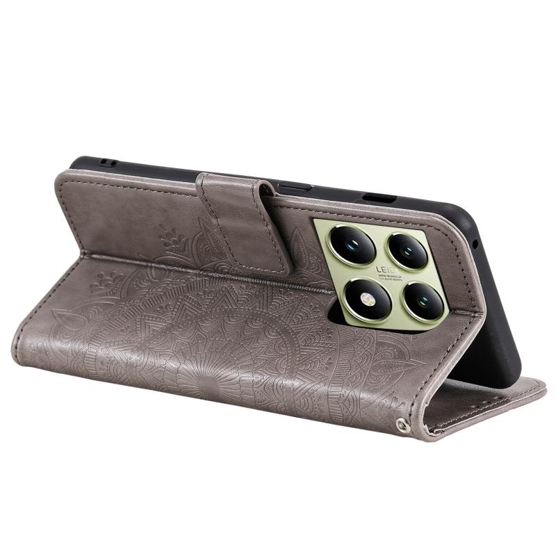 For Xiaomi 14T Pro Totem Flower Embossed Leather Phone Case with Lanyard(Grey)
