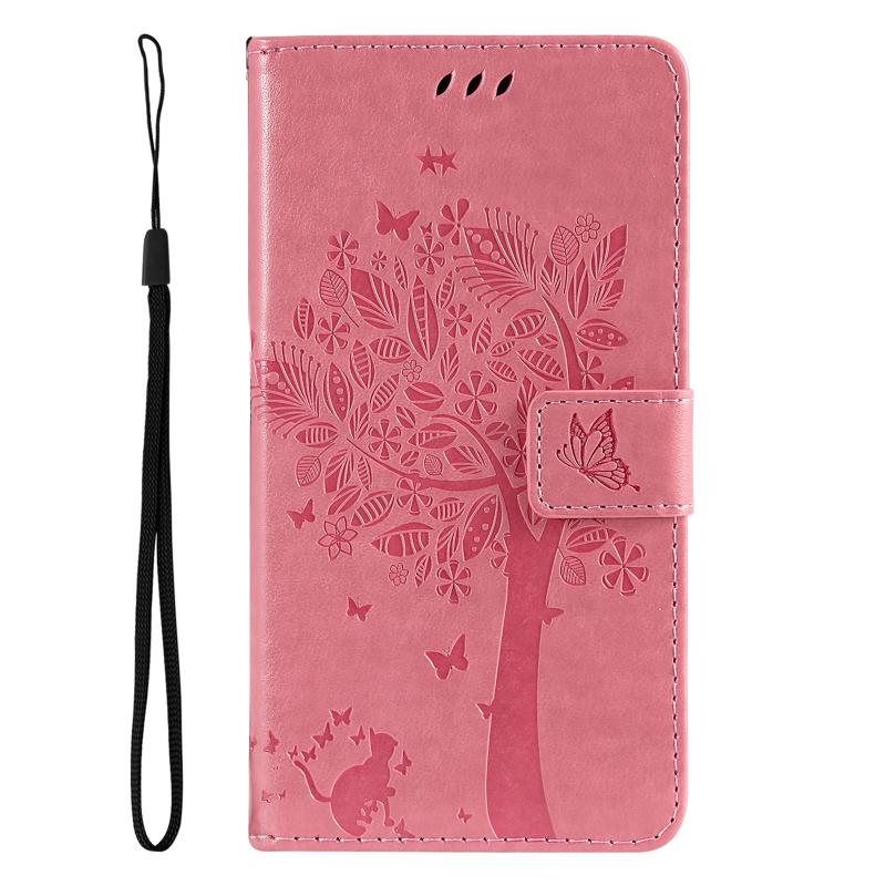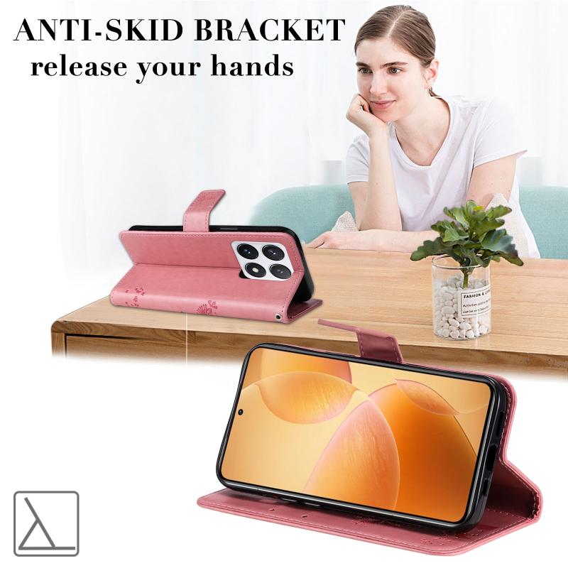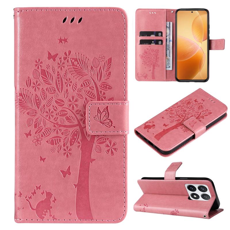 For Xiaomi 14T Pro Tree & Cat Embossed Pattern Flip Leather Phone Case(Pink)
