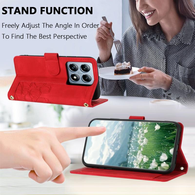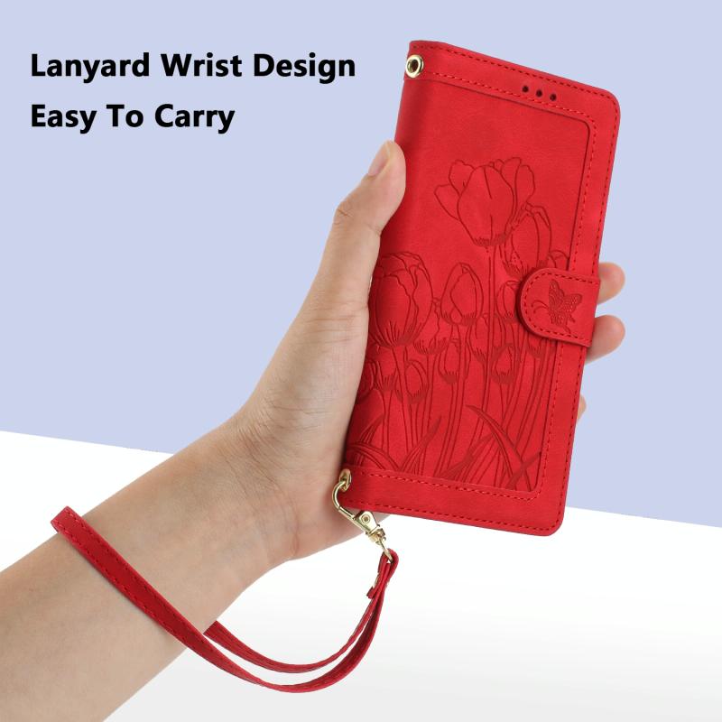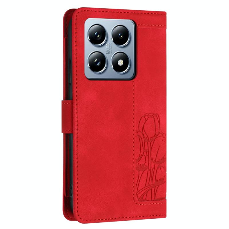 For Xiaomi 14T Pro Tulips Embossed Leather Phone Case with Lanyard(Red)