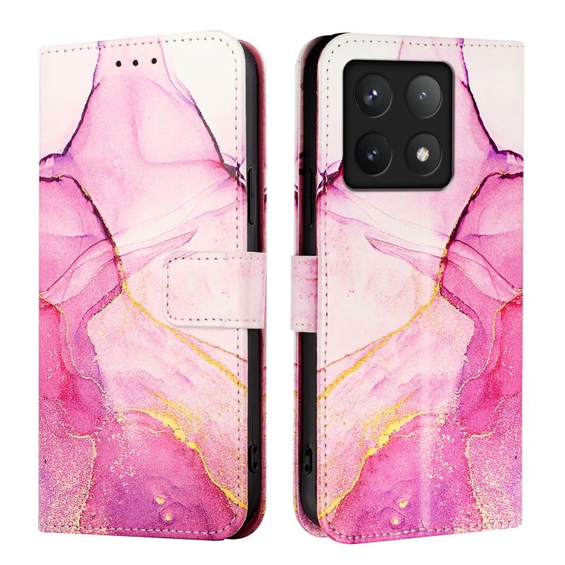 For Xiaomi 14T PT003 Marble Pattern Flip Leather Phone Case(Pink Purple Gold)