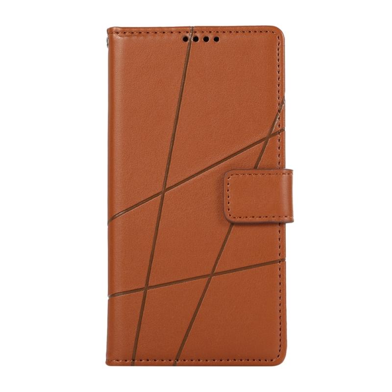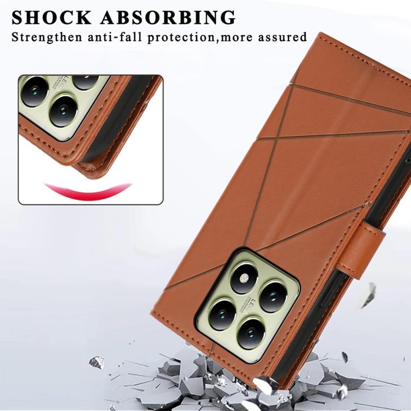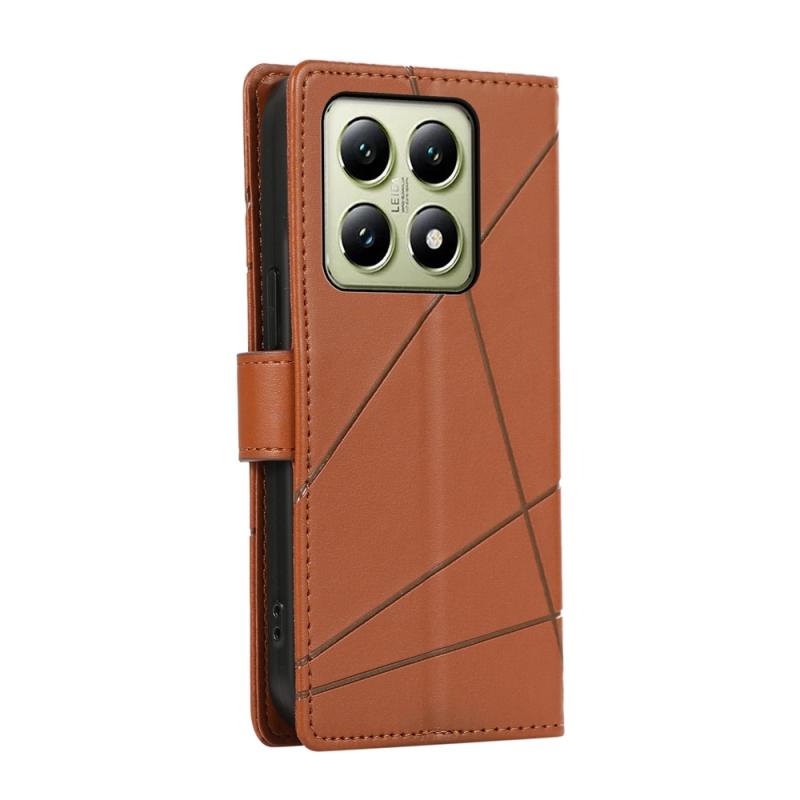 For Xiaomi 14T PU Genuine Leather Texture Embossed Line Phone Case(Brown)