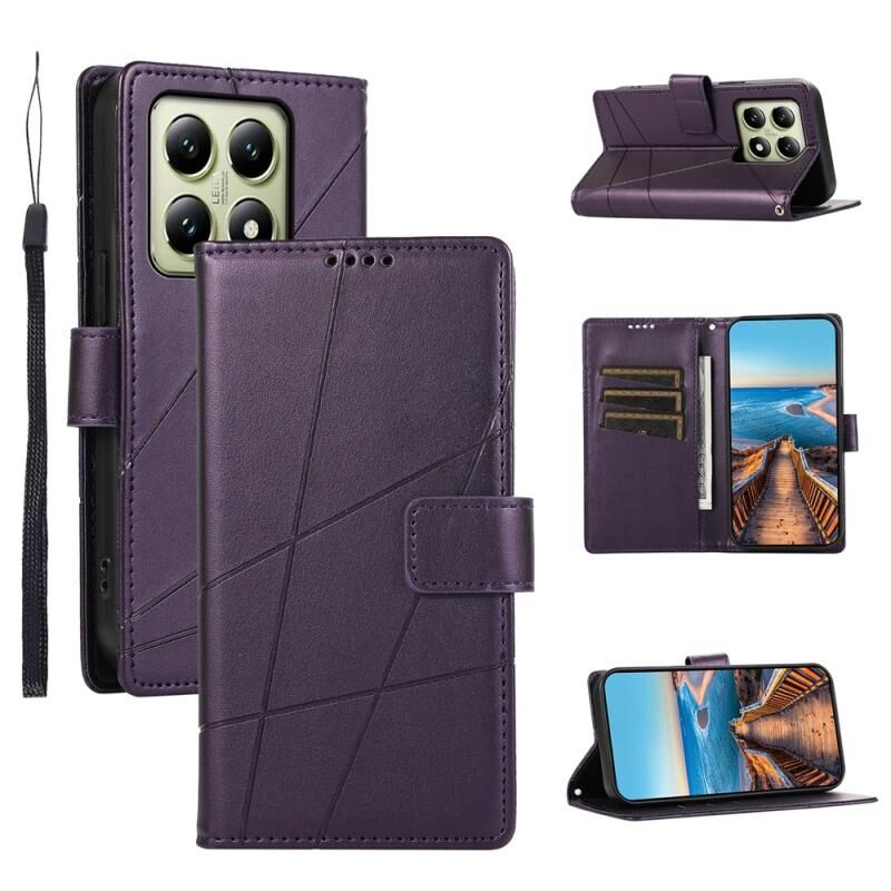 For Xiaomi 14T PU Genuine Leather Texture Embossed Line Phone Case(Purple)