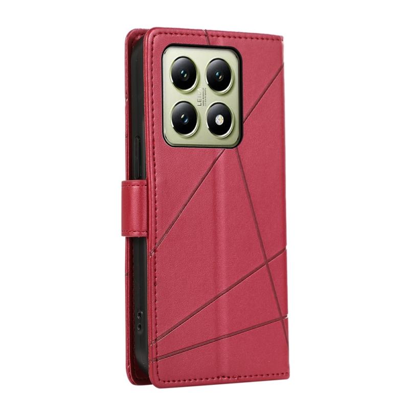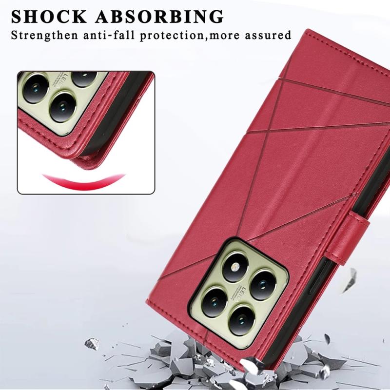 For Xiaomi 14T PU Genuine Leather Texture Embossed Line Phone Case(Red)