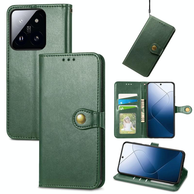 For Xiaomi 14T Retro Solid Color Buckle Leather Phone Case(Green)