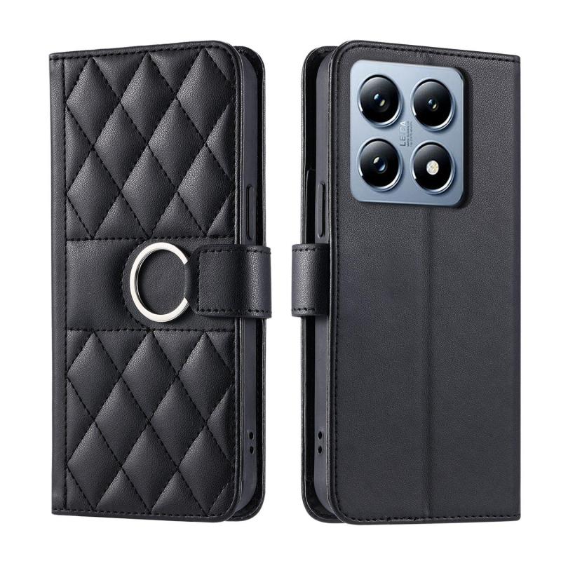 For Xiaomi 14T Ring Buckle Rhombic Leather Phone Case(Black)