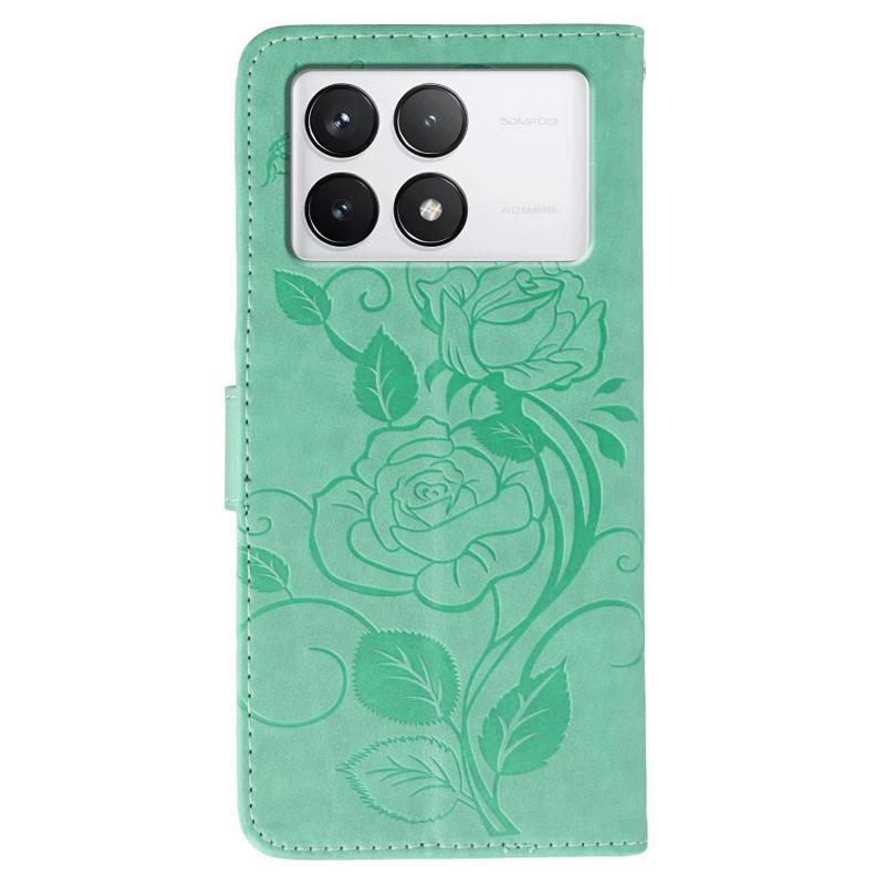 For Xiaomi 14T Rose Butterfly Embossed Leather Phone Case(Green)