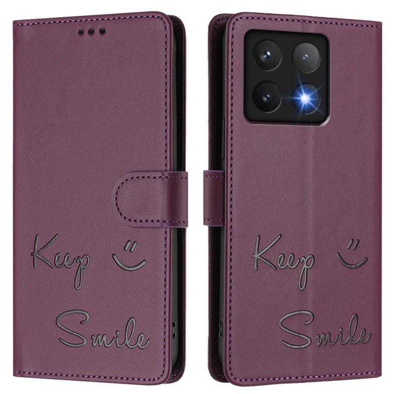 For Xiaomi 14T Smile Embossing RFID Leather Phone Case(Violet)