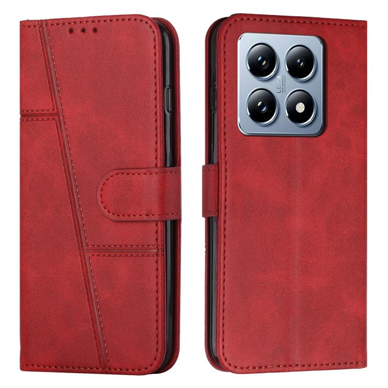 For Xiaomi 14T Stitching Calf Texture Buckle Leather Phone Case(Red)