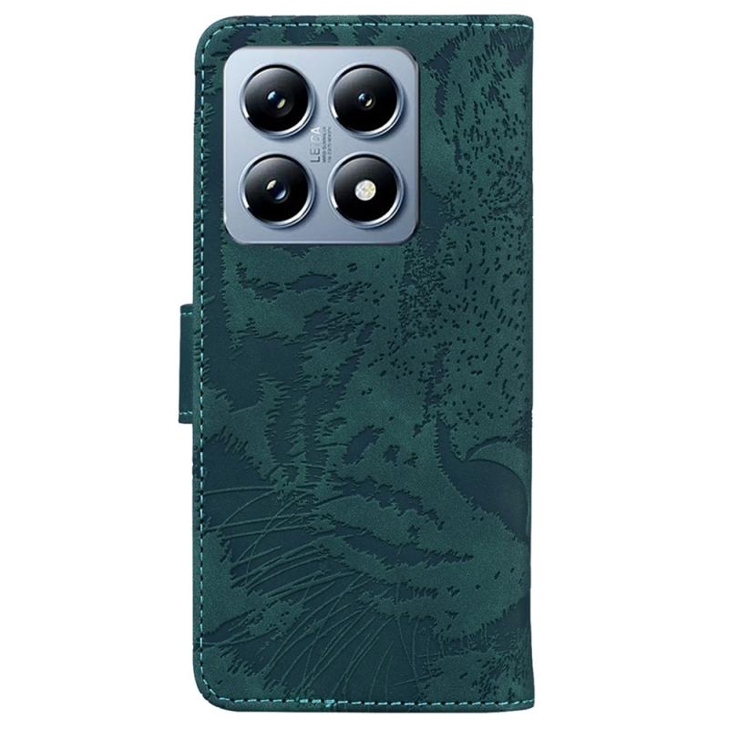 For Xiaomi 14T Tiger Embossing Pattern Flip Leather Phone Case(Green)