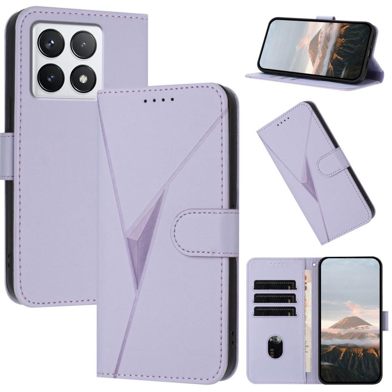 For Xiaomi 14T Triangle Pattern Buckle Clasp Leather Phone Case(Light Purple)