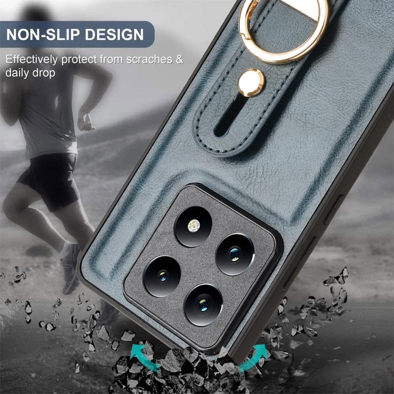 For Xiaomi 14T Wristband Leather Back Phone Case(Blue)
