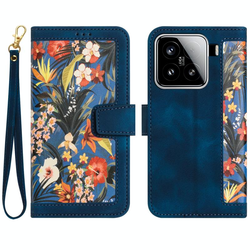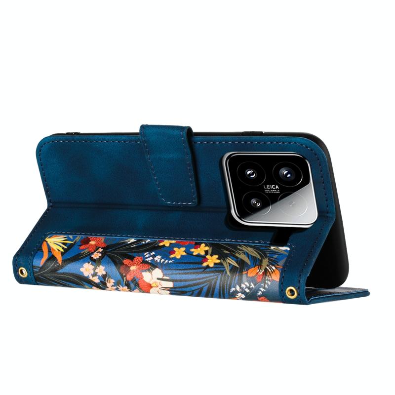 For Xiaomi 15 Floral Pattern Leather Phone Case with Lanyard(Dark Blue)
