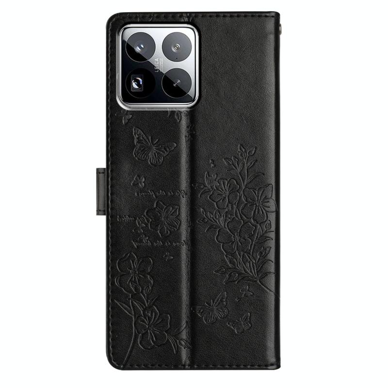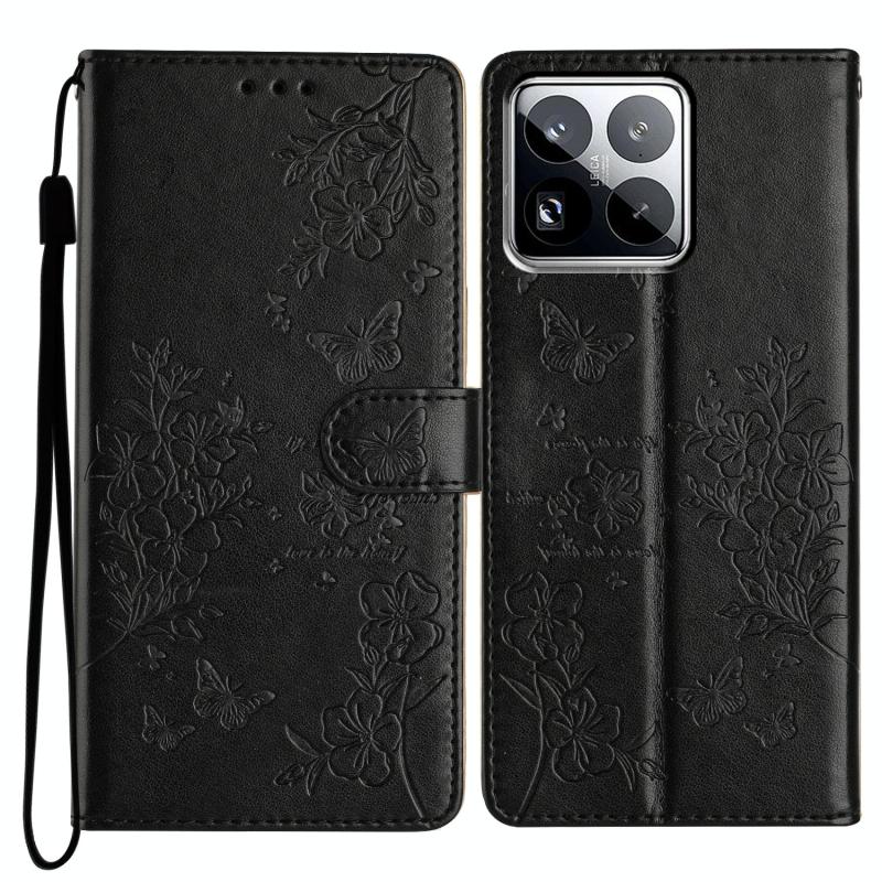 For Xiaomi 15 Pro Butterflies and Flowers Leather Phone Case(Black)