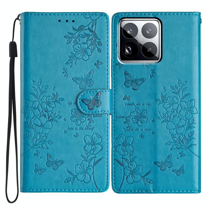 For Xiaomi 15 Pro Butterflies and Flowers Leather Phone Case(Blue)