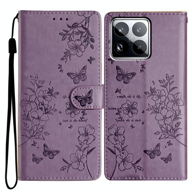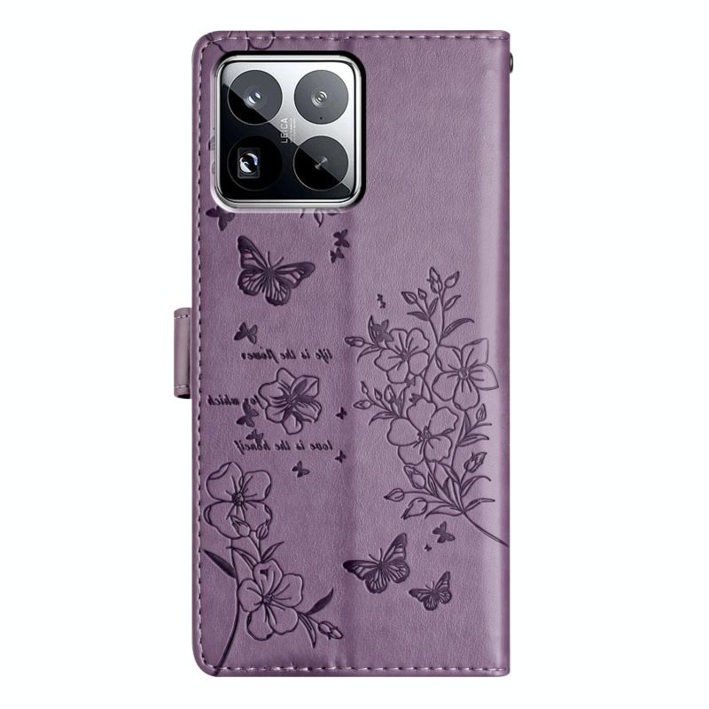 For Xiaomi 15 Pro Butterflies and Flowers Leather Phone Case(Purple)