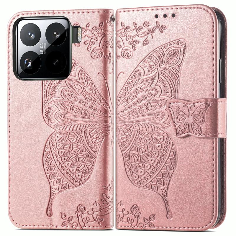 For Xiaomi 15 Pro Butterfly Love Flower Embossed Leather Phone Case(Rose Gold)