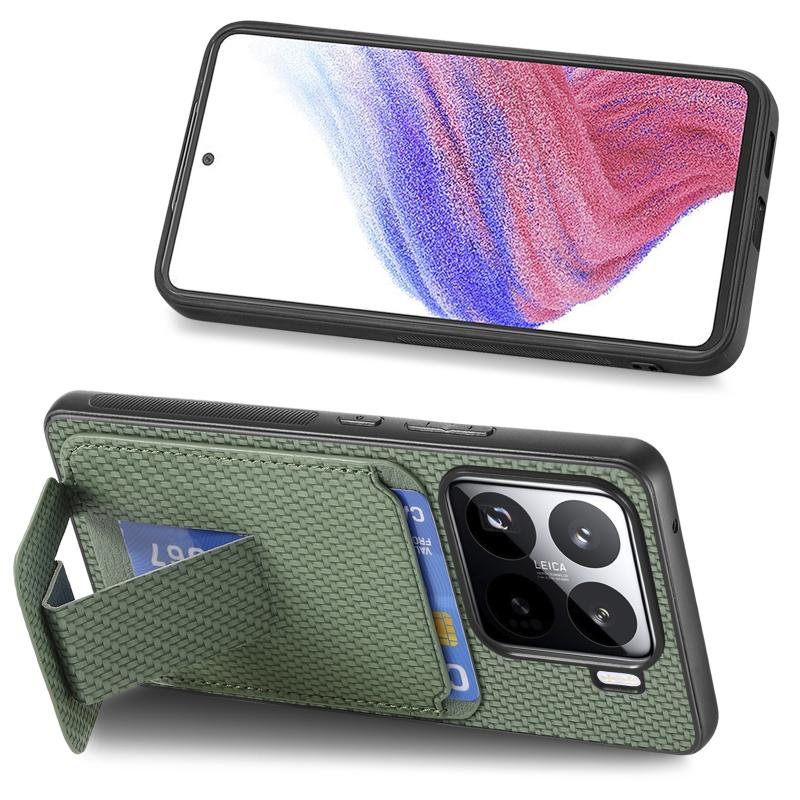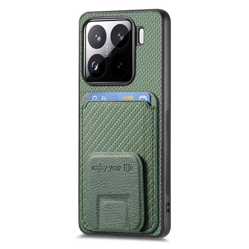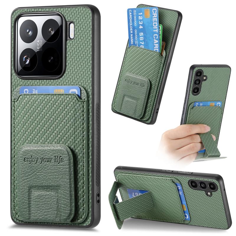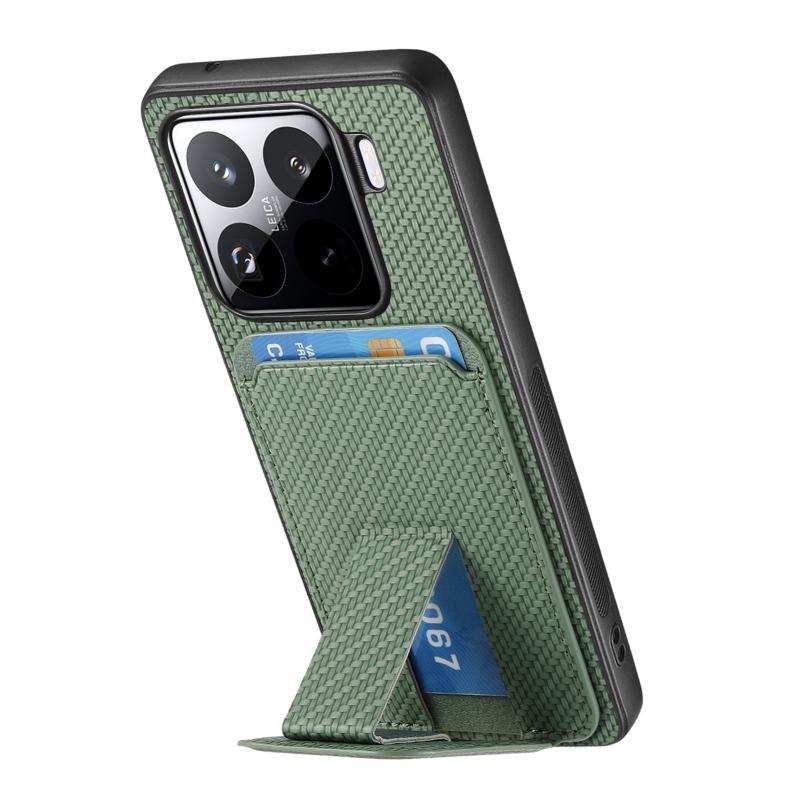 For Xiaomi 15 Pro Carbon Fiber Card Bag Fold Stand Phone Case(Green)