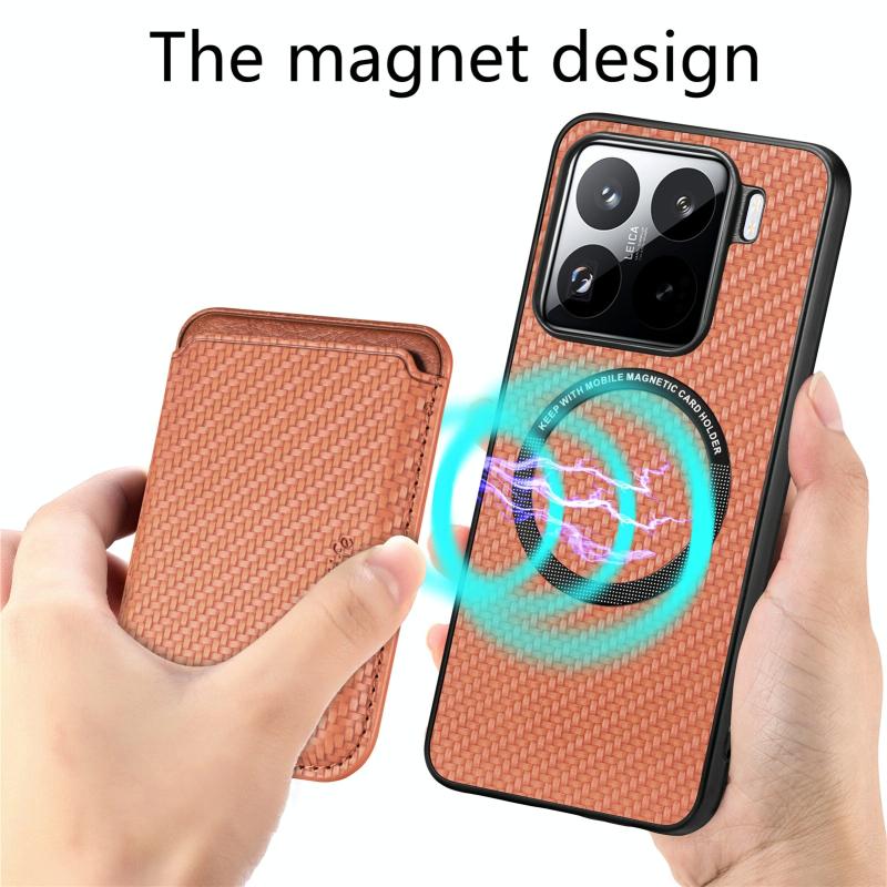 For Xiaomi 15 Pro Carbon Fiber Leather Card Magnetic Phone Case(Brown)