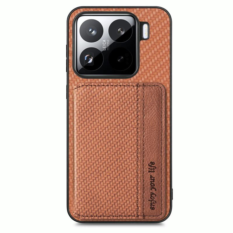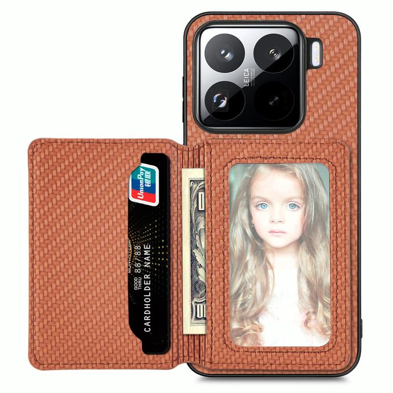 For Xiaomi 15 Pro Carbon Fiber Magnetic Card Bag Phone Case(Brown)