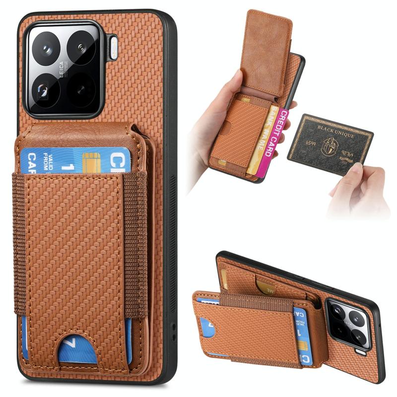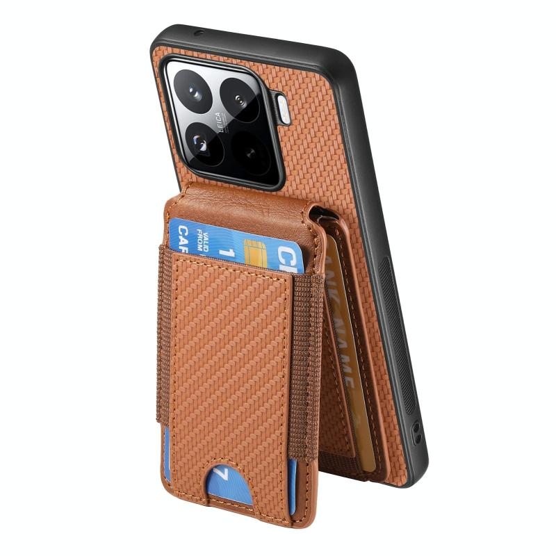 For Xiaomi 15 Pro Carbon Fiber Vertical Flip Wallet Stand Phone Case(Brown)
