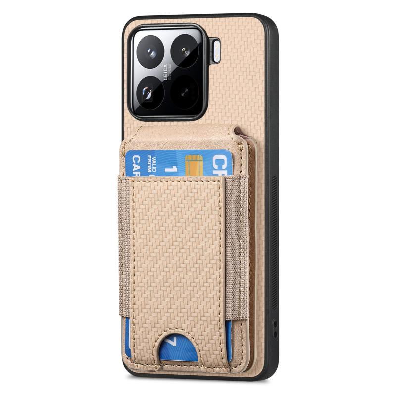 For Xiaomi 15 Pro Carbon Fiber Vertical Flip Wallet Stand Phone Case(Khaki)