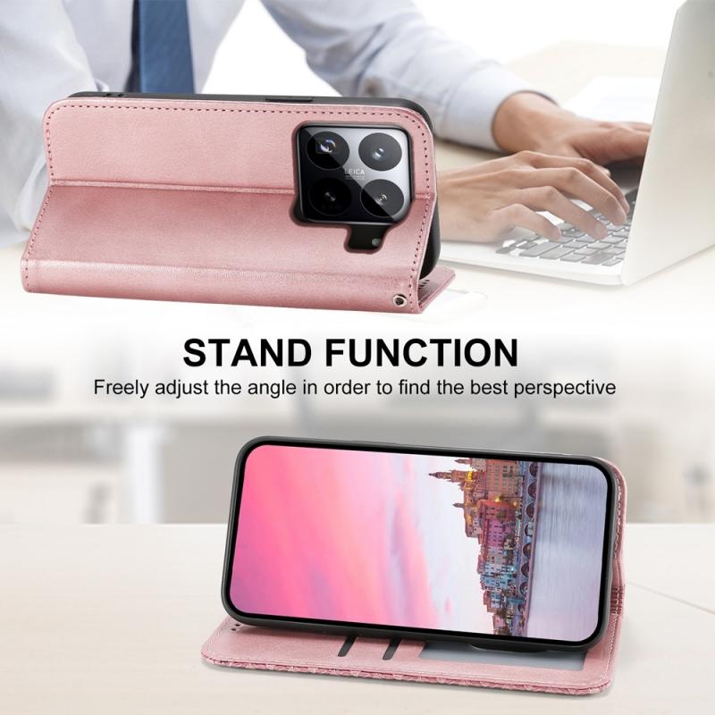 For Xiaomi 15 Pro Cubic Grid Calf Texture Magnetic Leather Phone Case(Rose Gold)