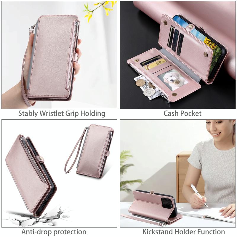 2. Function: Card slots, zippers, easy to use, and the bracket function design is convenient for watching videos.