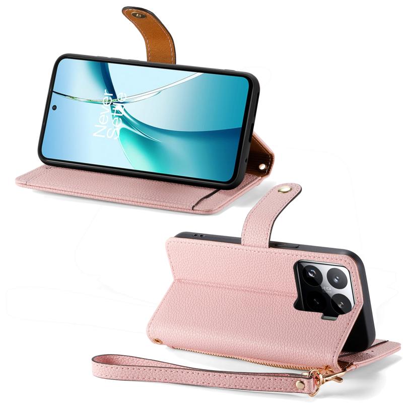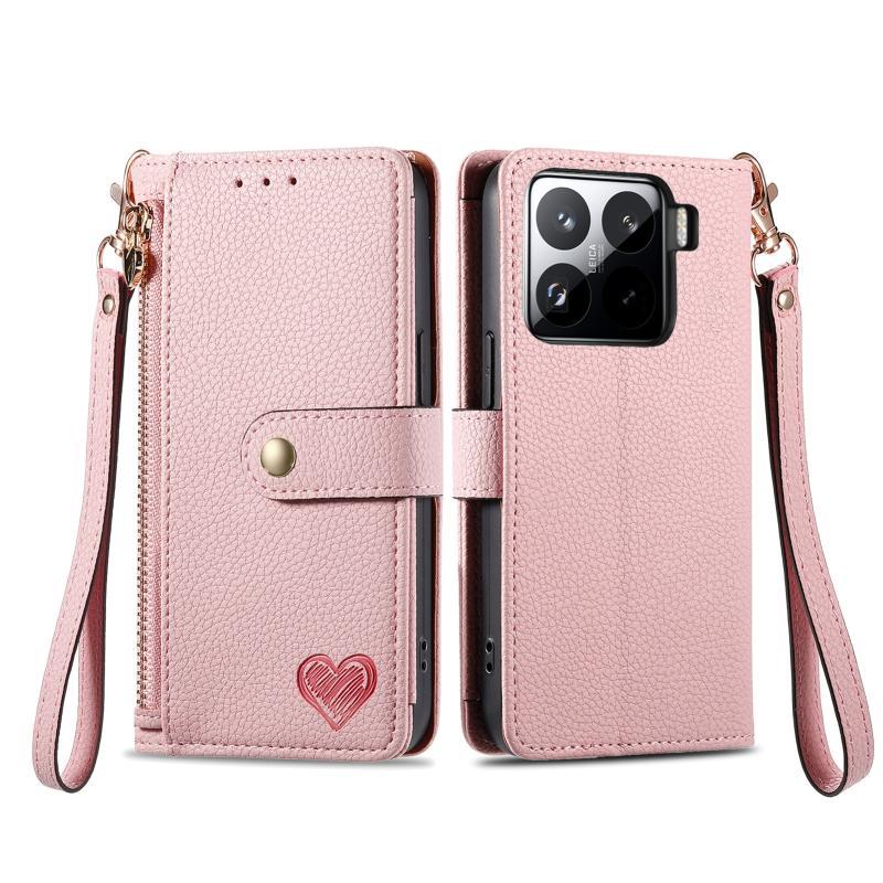 For Xiaomi 15 Pro Love Zipper Lanyard Leather Phone Case(Pink)