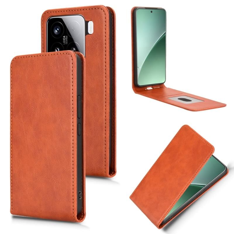 For Xiaomi 15 Pro Magnetic Vertical Flip Leather Phone Case(Brown)