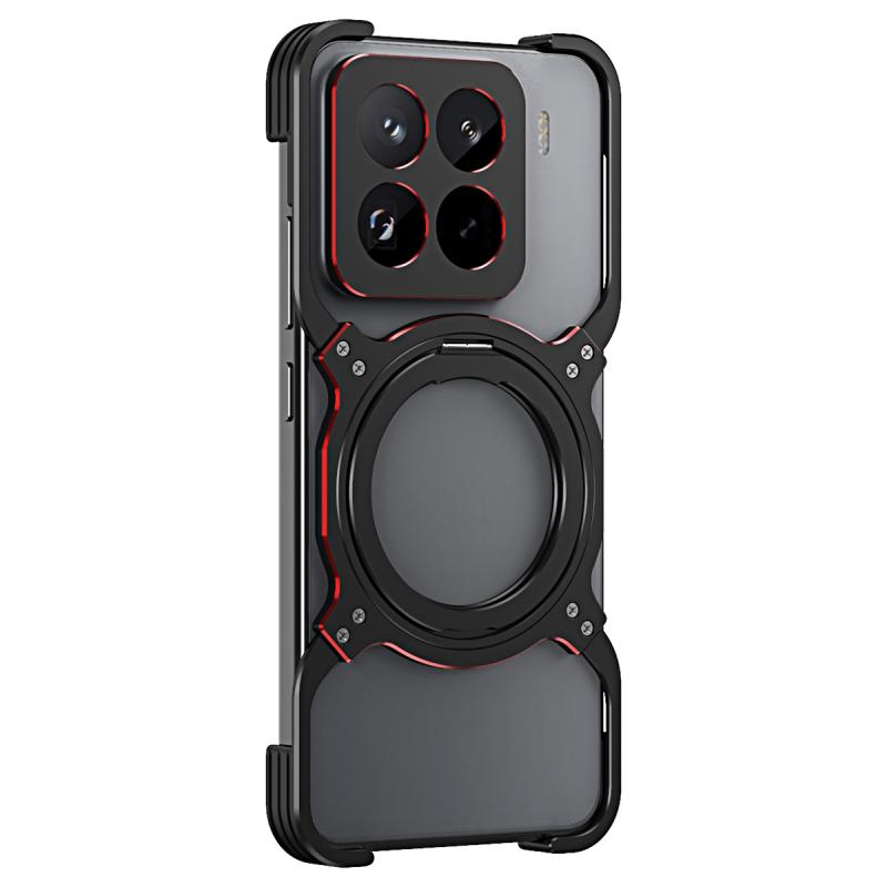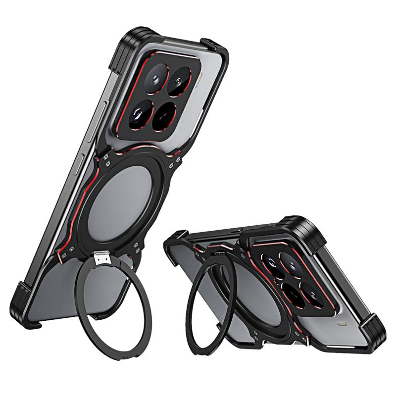 For Xiaomi 15 Pro Mechanical Arm Borderless MagSafe Holder Metal Phone Case(Black Red)